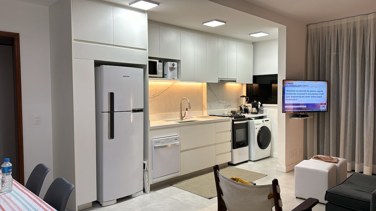 Jauns dzīvoklis ar balkonu visās istabās un skaistu sānu skatu uz jūru Ipanemā. Divi neatkarīgi apartamenti ar vienu divguļamo gultu un vēl vienu standarta divvietīgu izmēru. Gaisa kondicionētājs visās telpās, augstākās klases gultasveļa un ūdens attīrītājs. Kafijas cienītājiem - divu veidu kafijas automāti, viens Nespresso ar dažām kapsulām un otrs ar sietiņu un kafijas pulveri kā pieklājību, kā arī tējas, augļu un, protams, jauka, auksta sagaidīšanas alus!