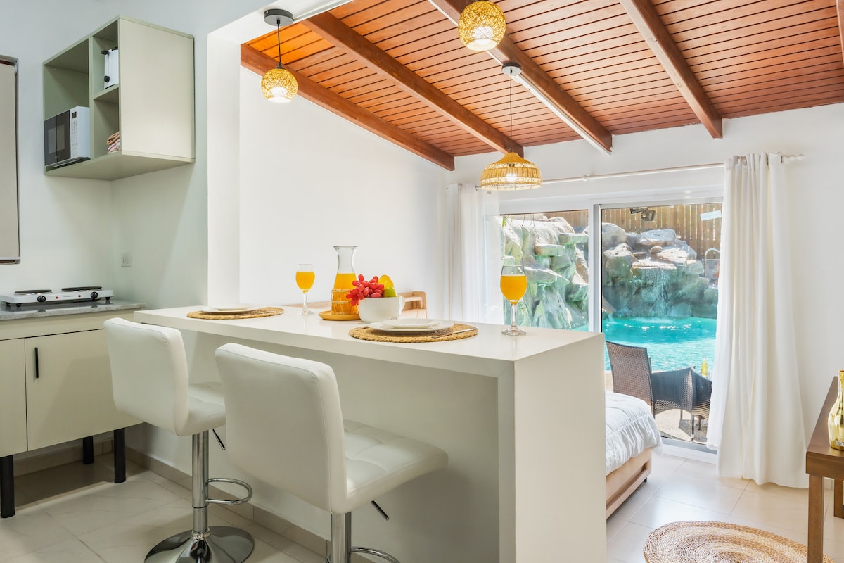 Izbaudiet izcilu atpūtu Arubā Island Paradise Retreats, kur greznība satiekas ar mieru. ✔Ērta bezmaksas autostāvvieta ✔Pilna neliela virtuve maltīšu pagatavošanai ✔Sazinieties ar ātrgaitas Wi-Fi ✔5 minūšu brauciena attālumā no slavenās Ērgļu pludmales ✔Izbaudiet komfortu, ko sniedz plīša divguļamā gulta ✔Atvērta dizaina dzīvojamā telpa ērtai dzīvošanai Jūsu ērtībai tiek piedāvāti✔ pludmales krēsli, dvieļi un dzesētājs ✔Aizbēdziet uz atpūtu brīvā dabā ar privātu ieniršanas baseinu, grilu un šūpuļtīklu
