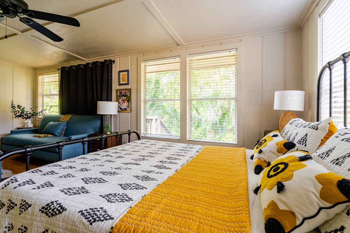 Dodieties pa piebraucamo ceļu un aizbēdziet no pasaules. Šī jaukā studijas tipa suite atrodas Blekkrīkas ziemeļu daļā, un tajā ir pieejamas lauku priekšrocības. Ikviens brīvdabas mīļotājs šeit atradīs ko sev piemērotu – putnu vērošanu, braucienus ar kajakiem, makšķerēšanu, SUP dēļošanu, savvaļas dzīvnieku vērošanu un daudz ko citu. Ja vēlaties tikai klausīties putnu un cikāžu dziesmās, arī tas ir pieņemami. Dzīvoklī ir mikroviļņu krāsns, Keurig kafijas automāts, tosteris un neliels ledusskapis. Wi-Fi ir ātrs, lai varētu strādāt attālināti.