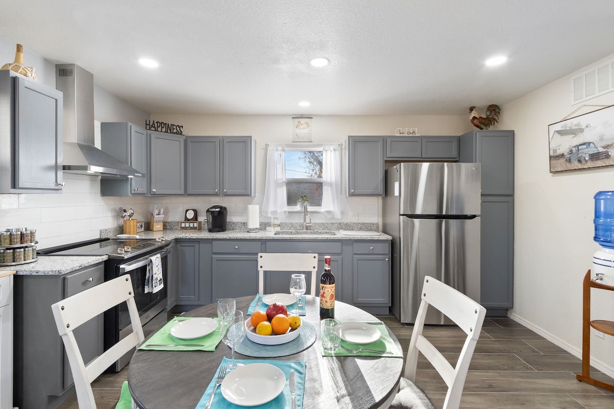 Atpūtieties kopā ar visu ģimeni šajā mierīgajā mājoklī. Šajā nesen pārbūvētajā mājoklī var uzņemt līdz 6 cilvēkiem, bet tajā ir vieta arī vairāk. Jūs atradīsieties tikai dažu minūšu attālumā no itāļu virtuves, Papa Doble, Love Buzz, L&J Cafe un Casa Pantera. Šis nesen atjaunotais mājoklis ar ērtu piekļuvi I-10 un US-54 atrodas centrā netālu no lidostas, Fortblisas un Elpaso centra. - Autostāvvieta pie piebraucamā ceļa - Veļas žāvētājs - Televizors katrā istabā un viesistabā. - Aukstā gaisa kondicioniera siltais sildītājs - Ātrs Wi-Fi - Pilnībā aprīkota virtuve
