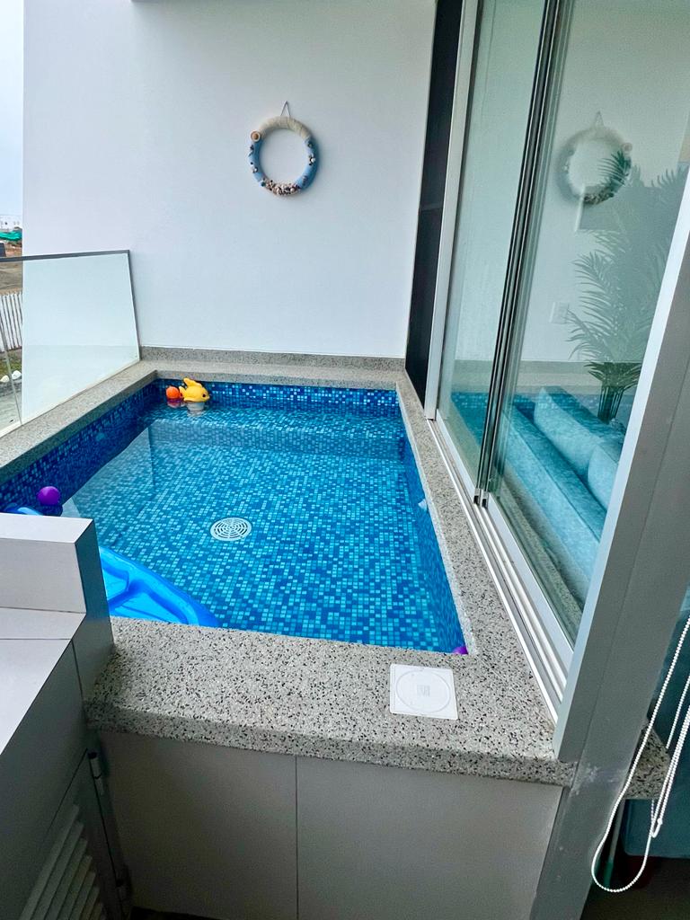 Māja ekskluzīvā Fundo Pradera Asia Condominium (km92,5 km no Panamericana Sur), 5 km no Boulevard de Asia. Privāts dzīvoklis ar diennakts apsardzi. Lielisks skats uz Āzijas ieleju, labi laika apstākļi, baseins un grils. 730 metru zeme. Ļoti plašas guļamistabas. Daudzdzīvokļu mājā ir vietas pastaigām. Uz bulvāra atrodas lielveikali, aptiekas, restorāni un citi, kas ir atvērti visu gadu. Daudzdzīvokļu mājā nav izejas uz pludmali Apsveriet iespēju ņemt līdzi gultasveļu (mēs nodrošinām spilvendrānas)