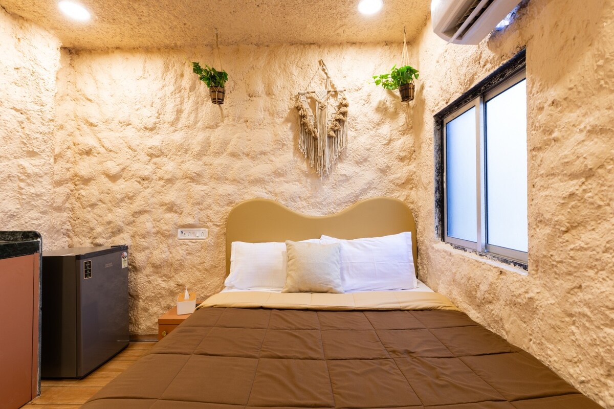 ห้องพักที่ให้ความรู้สึกเหมือนหลุดเข้าไปในถ้ำจริงๆ แต่ยังคงความสะดวกสบายและมีสิ่งอำนวยความสะดวกที่จำเป็น ทำให้เป็นประสบการณ์การพักผ่อนที่น่าจดจำ