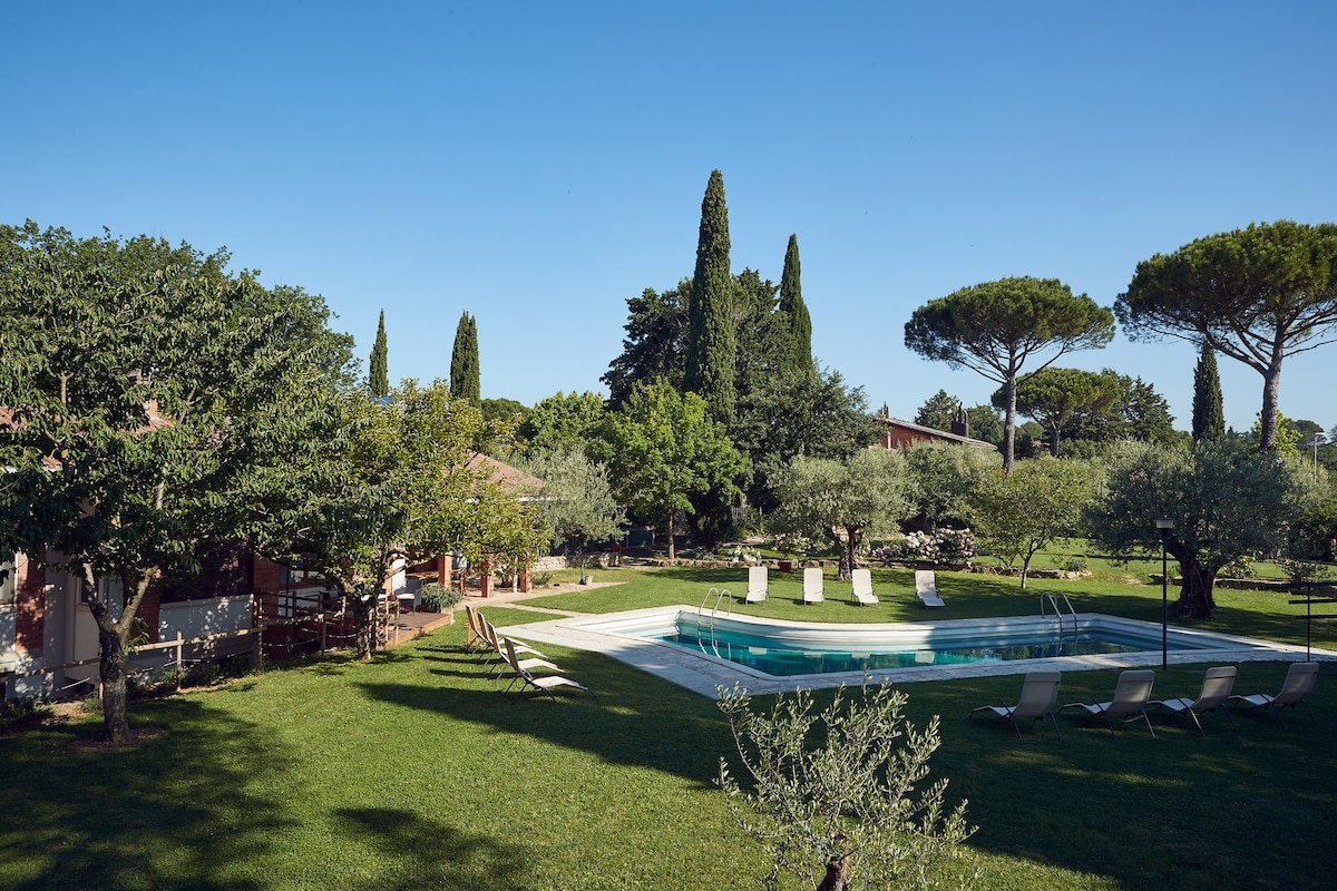 Lielisks dzīvoklis, kas atrodas vēsturiskā 300 romiešu izcelsmes ēkā, kas atrodas pašā Umbrijas lauku sirdī, vēsturiskā saimniecībā. Mēbelējums ir atjaunots un ērts. Plaša, gaiša, funkcionāla telpa ar skatu no visas Ukrainas, ko ieskauj plaši vīna dārzi, gadsimtiem senas olīvu audzes, apburošas ainavas, liels dārzs un citi krāšņi augi. 10 km attālumā no Perudžas vēsturiskā centra un 10 km attālumā no Trasimeno ezera.