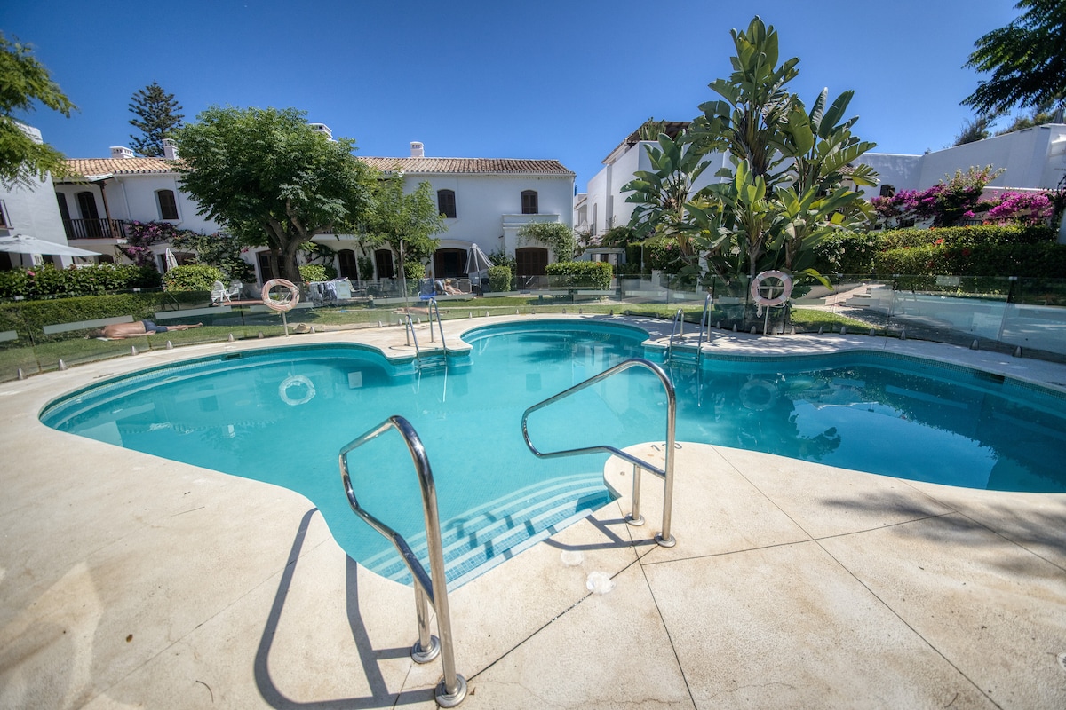 Welcome to my townhouse overlooking the Royal Guadalmina Golf Club, perfectly located for a family holiday, golf break, exploring Andalucia or taking in the glitz and glam of Marbella and Puerto Banus. You can dine al fresco on the terrace or just read a book. The pool is so nice I often don't do the 10 min walk to the beach, but it's up to you! I am a member of the Royal Guadalmina Golf Club and, as such, I can get you discounted green fees on both its courses after 11.30am.
