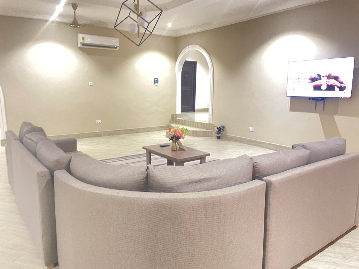 - Visa māja tikai jums - Jūsu privātais kino - 3 guļamistabas ar Super King izmēra gultām - 2 dažādas dzīvojamās zonas ar ēdamistabu - Pilnībā aprīkota virtuve - Veļas mazgājamā mašīna jūsu veļas mazgāšanai - Diennakts videonovērošanas novērošana - Diennakts personīgais palīgs/asistents - Bezmaksas apsargāta autostāvvieta - Katrai guļamistabai ir savs balkons - Istabas ar gaisa kondicionētāju Bezmaksas bezvadu internets - Gultas veļa un dvieļi Prempeh starptautiskā lidosta atrodas 9 jūdžu attālumā no villas. Aizbēdziet no pilsētas trokšņa un dodieties uz šo mierīgo patvērumu.