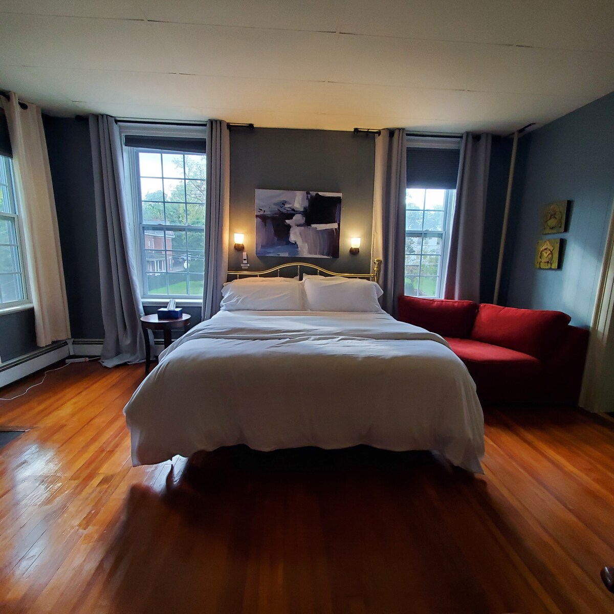 Gatavs jums un jūsu ģimenei. Šis arhitektūras skaistums ir ļoti plaša otrā stāsta pastaiga (13 soļi). No jūsu privātās verandas uz South Lewis ielas Obernā paveras iespaidīgi rudens ainavu skati. Pastaiga līdz Obernā pilsētas centram tikai 3 kvartālu attālumā, divguļamās gultas, dīvāns (neatveras) un liela gultiņa jūsu apsildāmajai un ar trim logu gaisa kondicionieriem tā ir lieliski izvietota, lai izbaudītu maksimālo platību ar minimālu braukšanu.