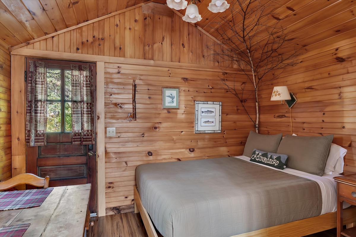 Plan a peaceful stay for up to 5 people in this cozy, well-appointed cabin with lake access that marries rustic charm with modern amenities. This is a vintage Adirondack retreat with access to a quiet and private lake perfect for swimming, paddling and fishing. We have loons and a resident bald eagle. A local winery and brewery are so close by too! Ausable Chasm is fun family-friendly attraction just down the road.