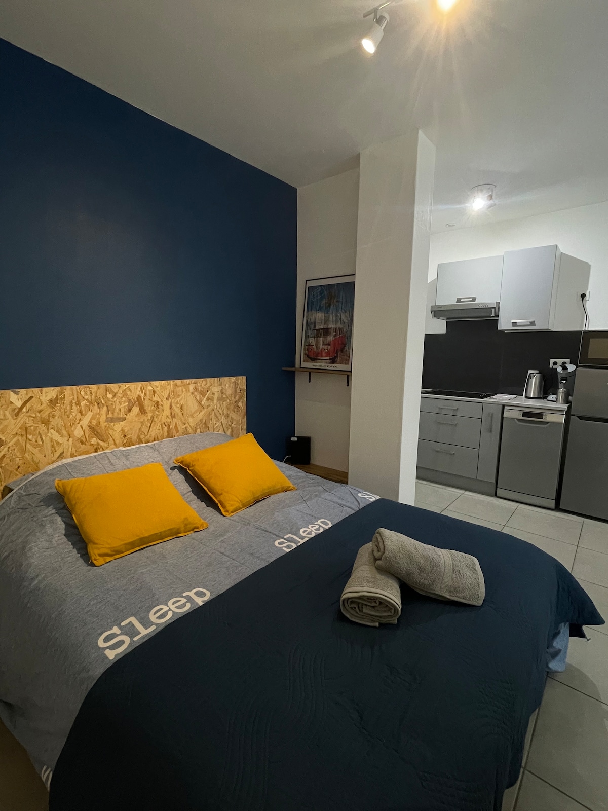 Studija 14 m2 platībā, netālu no šosejas (1 min), ar visu tuvumā esošo: maiznīca un macdo/restorāni 5 minūšu gājiena attālumā, Cora un KFC 15 minūšu gājiena attālumā. Neatkarīgs: ieeja/tualete/duša/kafijas stūrītis Pirmais stāvs: ērts, ja jums ir koferi 140 x 190 cm gulta Uzmanību: mēs nodrošinām traukus/galda piederumus, bet nav iespējams pagatavot ēdienu, mikroviļņu krāsns ir jūsu rīcībā. Tiks nodrošinātas brokastis: maize (vai konditorejas izstrādājumi)/piens/sviests/kafija/tēja/jogurts/augļi