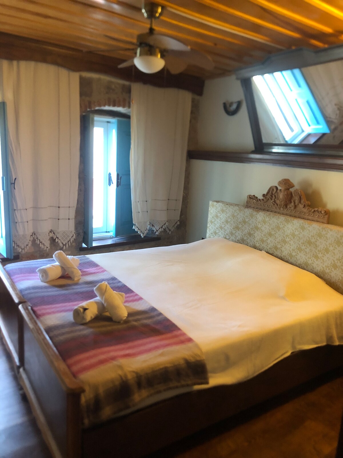 MŪSU ATRAŠANĀS VIETA ATRODAS AYVALIK CENTRĀ, 2 MINŪŠU GĀJIENA ATTĀLUMĀ NO TIRGUS. Vēsturiskās ruma savrupmājas 3. stāvs Ayvalık Mūsu burvīgā akmens istaba no grīdas. Nonākot šeit, jūs sajūtat ruma atmosfēru no vēsturiskajām šaurajām Ayvalık ieliņām. Šajā istabā ir 1 divguļamā gulta. Mums ir kopīga terase ar lielisku skatu uz Ayvalik tieši blakus istabai. Mēs atrodamies 10-15 minūšu attālumā no ķiploku pludmales un Kundas salas ar automašīnu.