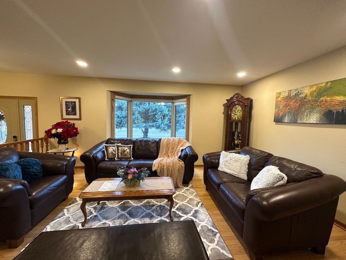 Nakšņojiet mūsu plašajā modernajā mājoklī vienā no Ridžainas burvīgākajām apkaimēm! Ar divām divguļamajām gultām, dvīņu gultu un divguļamo gultu ir vieta ikvienam. Straumējiet 75collu 4K televizorā, spēlējiet vairāknekā100 Wii spēles vai strādājiet pie stāvoša galda ar diviem monitoriem un ātru Wi-Fi. Gatavojiet pilnībā aprīkotā virtuvē un pēc tam atpūtieties pie ugunskura vietas, grila vai priekšējā stāva. Dažu minūšu attālumā no RCMP centra, lidostas, Mozaīkas stadiona un pilsētas centra. Lieliski piemērots izpētei, atpūtai un atmiņu radīšanai kopā ar ģimeni un draugiem!