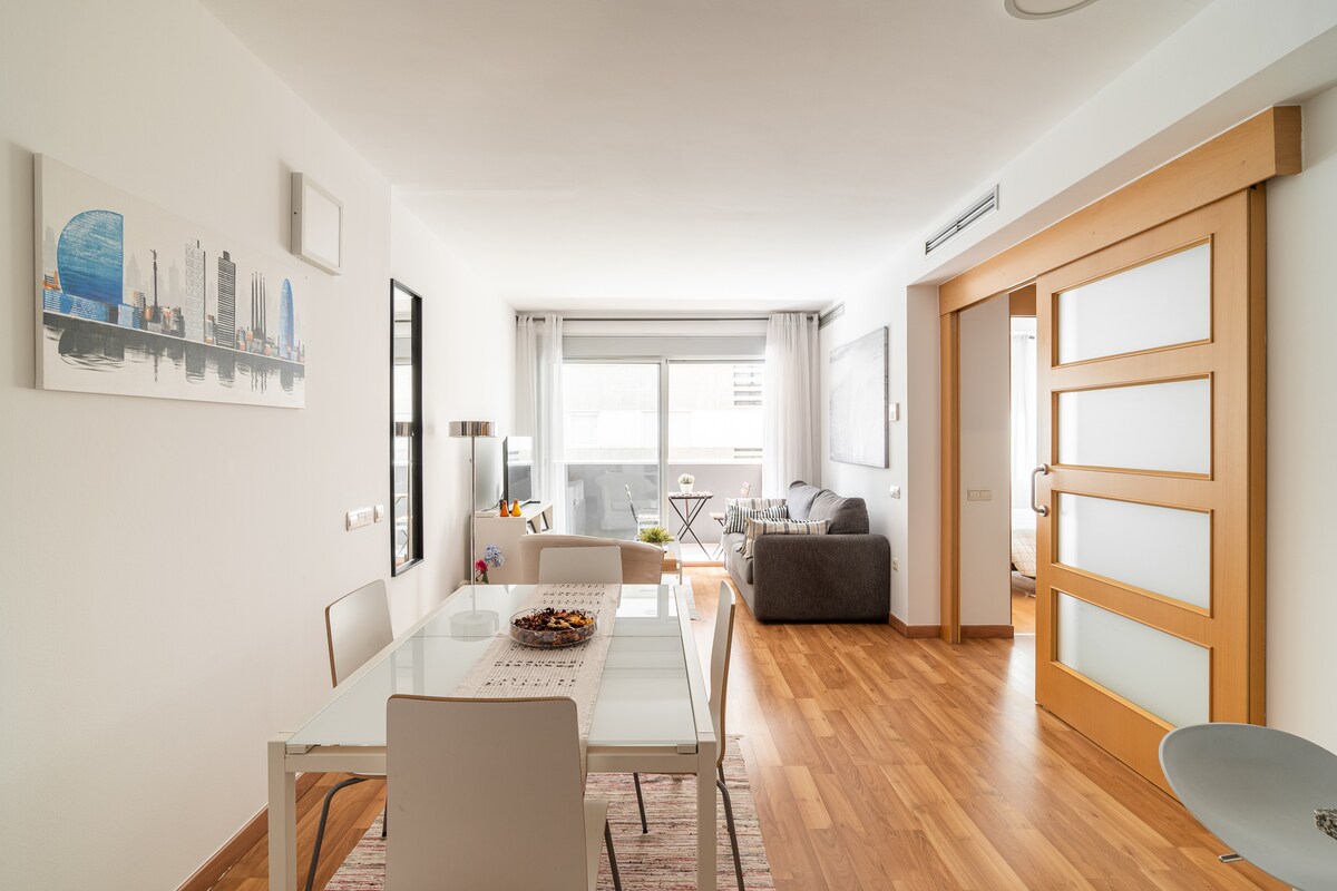 Tūrisma licence: HUTB-014176-57 NRA: ESFCTU00000810600053954900000000000000HUTB-014176-578 Mājīgs un moderns 92 m2 dzīvoklis jaunuzceltā ēkā (2007). Atrodas dažu soļu attālumā no CCIB (Centro de Convenciones Internacionales de Barcelona) un Parc del Fòrum - svarīgas publiskās un kultūras telpas pilsētā, kurā ir starptautiski atzīti festivāli (Primavera Sound, Off Week Festival, Barcelona Beach Festival, Festival Cruïlla u.c.)