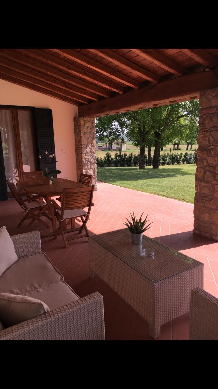 Provansas stila dzīvoklis, ko ieskauj vīna dārzs un olīvkoki. Jūs izbaudīsiet klusumu ar laukiem 10 km attālumā no pilsētas un 4 km attālumā no šosejas. Zīles un dzeguzes dziedāšana būs skaņu celiņš viesistabā, kamēr stirnas degs starp olīvkokiem. Ir iekļautas itāļu pamata brokastis (kafija, tēja, piens, cepumi utt.). Ja dodat priekšroku bagātākām un pasniegt brokastis pie galda, cena ir 15 € par personu (10 € vecumā no 5 līdz 15 gadiem, bez maksas līdz 5 gadu vecumam). Pieejams Wallbox EV.