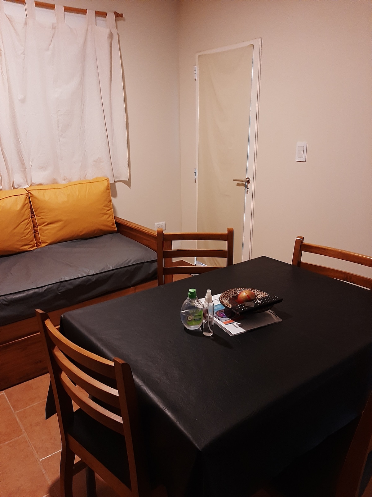 Departamento para 2 personas. A 3,2km de la plaza Rivadavia, 2km de la terminal de ómnibus y a 9,5km del Aeropuerto Incluye desayuno de cortesía para la bienvenida El departamento cuenta con un living comedor. Wifi, Tv SMART Aire acondicionado frio/calor en habitación y calefacción. Una habitación con dos camas simples o una doble (opcional) La cocina cuenta con horno, microondas, pava eléctrica, sartén, set de cubiertos, vasos, tazas, repasadores, etc Ropa de cama, toalla y toallón incluidos