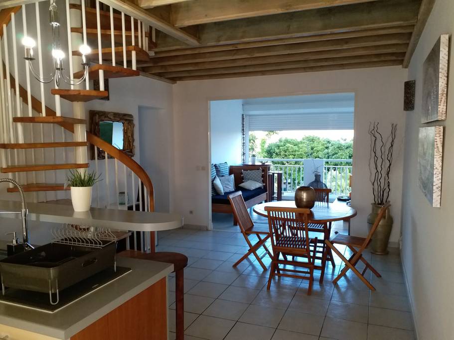 Studio neuf dans un bas de villa avec vue sur la montagne et petite vue mer, donnant sur le jardin. L'endroit est calme et reposant. Situé à équidistance entre la grande terre et la basse terre, vous pourrez profiter des plages ,des rivières et des montagnes de l'île. Proche de toutes les commodités tels que boulangeries, pharmacies, centres commerciaux et autres . Vous pouvez également vous déplacer à pieds pour les commerces les plus proches. Idéal pour les séjours professionnels.