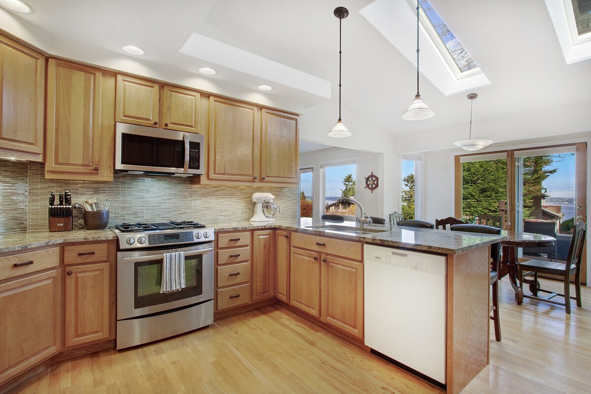 No Dahlia Bluff kotedžas paveras skats uz Puget Sound, no kura paveras neaizmirstams 180° skats uz ūdeni, Beikera kalnu un Sietlu. Izbaudiet panorāmas terasi un nevainojamu fizioloģisko burbuļvannu, ko rūpīgi apkalpo pirms katra viesa uzturēšanās. Īsa pastaiga līdz espresso, konditorejas izstrādājumiem, ar malku kurinātai picai un itāļu ēdienam. Pilnībā aprīkota virtuve un luksusa ērtības padara šo mierīgo atpūtas vietu par lielisku brīvdienu vietu vai ideālu atpūtu no mājām. Minūtes līdz Manitou pludmalei ar automašīnu vai kājām.