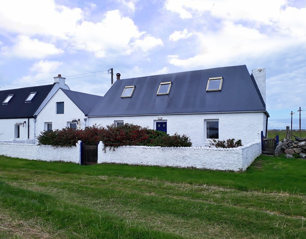 Baltais nams, Tiree; fantastiska lauku māja jūrā