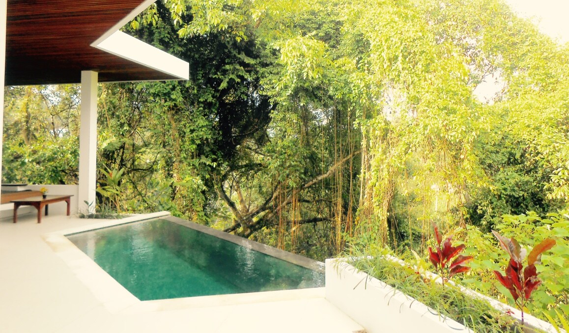 Romantiska Ubud villa - privāts baseins un skats uz džungļiem