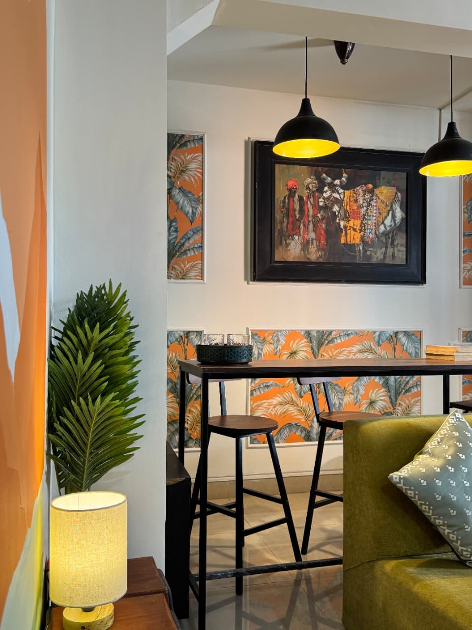 Welcome to Shadow Leaf – A Cozy Olive & Black Hideaway It is a studio apartment tucked away in a quiet corner, Shadow Leaf blends the deep calm of olive green with bold black interiors to create a modern yet cozy escape. Whether you’re here for a peaceful retreat or a creative recharge, this thoughtfully designed space offers comfort, warmth, and character in every detail. From ambient lighting to plush textures, Shadow Leaf is where style meets serenity.
