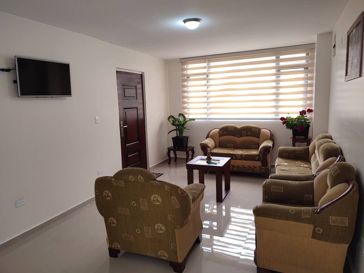 Izbaudiet neaizmirstamus piedzīvojumus kopā ar ģimeni vai draugu grupu šajā ļoti elegantajā, modernajā un stilīgajā dzīvoklī. Atrodas 3. stāvā, pilnībā mēbelēts, ar panorāmas skatu uz pilsētu un kalniem; ērts centrālā un ļoti drošā vietā. Tajā ir dzīvojamā istaba, Smartv, ēdamistaba, virtuve, koplietošanas vannasistaba, 3 guļamistabas, 2 pilnas vannasistabas, 2 balkoni, piekļuve terasei. Wi-Fi, internets, karstais ūdens (24 stundas) privāta automatizēta garāža 1 automašīnai. Gultas: 3 (2 karalienes, 1 palags) Ietilpība: 6 viesi.