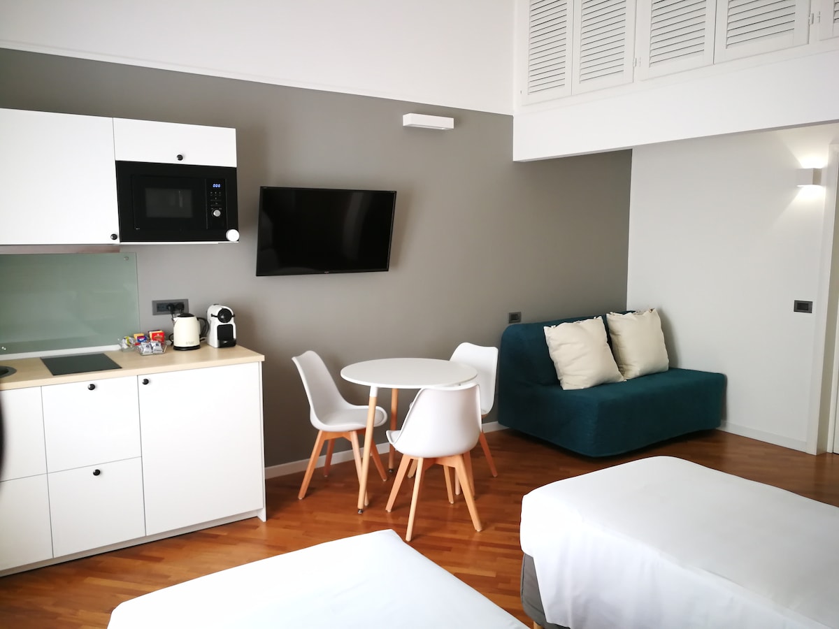 Mana naktsmītne ir ļoti centralizēti pabeigta augstākās klases studija 100 m attālumā no petruzzelli teātra, 50 m attālumā no Corso Cavour (viena no svarīgākajām bāru nomalēm) pilsētas centra, 200 m attālumā no centrālās stacijas un 300 m attālumā no ostas. Dzīvoklis ir pilnībā pabeigts ar augstākās kvalitātes materiālu, kā arī pilnībā aprīkots ar pilnu virtuvi, 32 " Full hd LED TV, divguļamo gultu , gaisa kondicionieri. Tam ir uzkodu punkts.