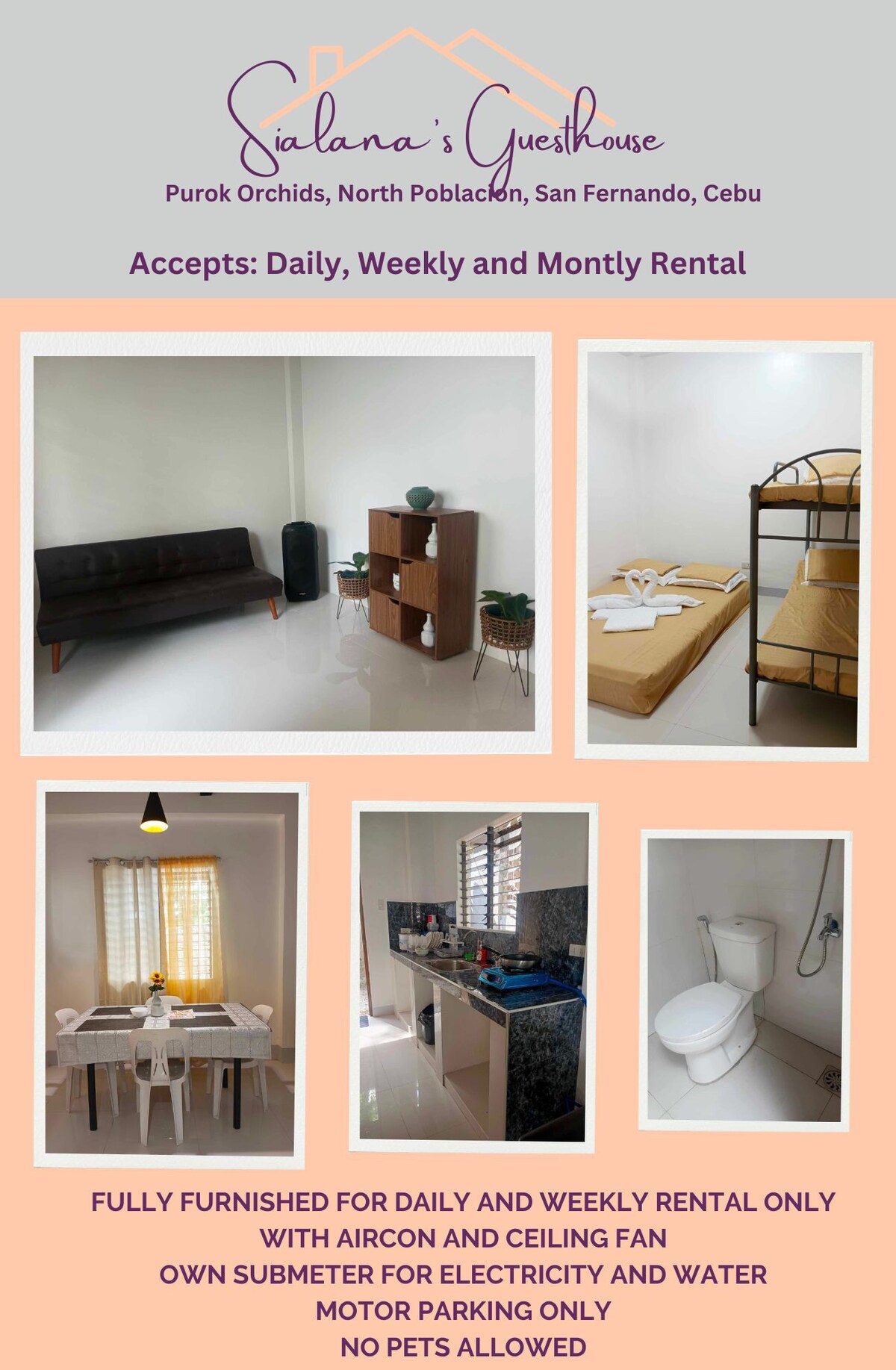 Atpūtieties šajā unikālajā un mierīgajā mājoklī. Mūsu namiņš atrodas % {smartilis, SEBU, kur ir pazīstami MANTAYUPAN ūdenskritumi. Tā atrodas arī netālu no MOALBOAL, SEBU, kur atrodas slavenas pludmales. Namiņā ir 1 divguļamā gulta un vēl vieta 2 cilvēkiem bēniņos, kā arī gaisa kondicionieris. ŠĪ VIETA ir lieliski piemērota ATPŪTAI KEMPINGĀ, AIZBĒGŠANAI un PIEDZĪVOJUMAM, ko LAUKOS var justies uz dienvidiem no cebu. 15 minūtes līdz MANTAYUPAN KRIŠANAI 8 minūšu attālumā no PUBLISKĀ TIRGUS 30 minūšu attālumā no MOALBOAL PLUDMALĒM.