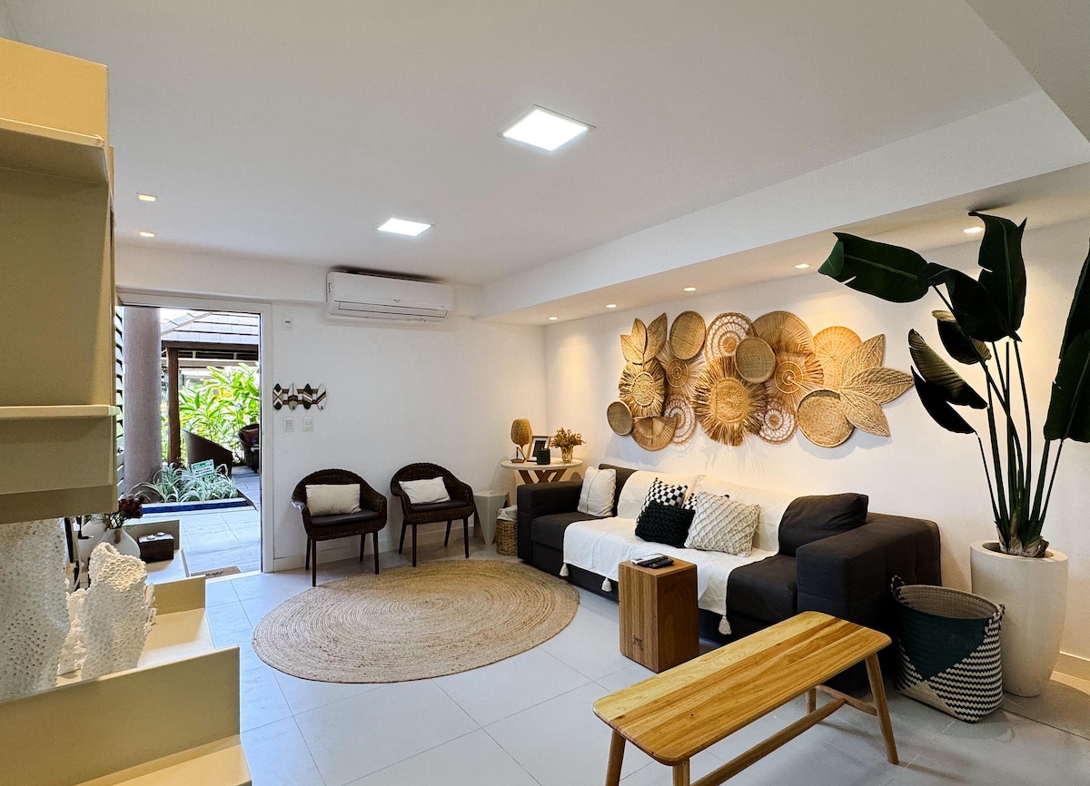 Imagine acordar em um lugar com acesso fácil à praia, conforto, segurança, tranquilidade e harmonia. Desfrute de manhãs tranquilas em nossa varanda ensolarada, perfeita para um café da manhã relaxante com vista para nossa piscina. Nossa acolhedora sala de estar é ideal para noites de cinema ou um bom vinho, equipada com uma smart TV e uma seleção de filmes e/ou shows no YouTube. Com dois ar condicionados na sala e uma cervejeira onde a cerveja fica daquele jeitinho que todos amam.