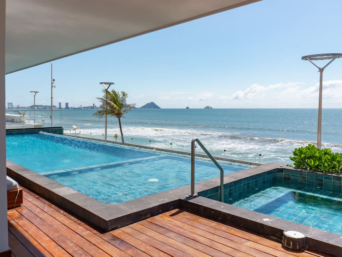 Viesu iecienītākais skats uz labākajiem skatiem pilsētā, kas atrodas pludmales frontes centrā, starp pieprasītākajiem dzīvokļiem Mazatlanā ar nevainojamu septiņu gadu īres vēsturi. Stūra apartamenti 14. stāvā, brīnišķīgi panorāmas skati uz okeānu, pludmali un pilsētu. Dodieties lejup uz Sendibīču, Malekonas dēļu celiņu un restorāniem. Starbucks, OXXO pirmās nepieciešamības preču veikals un Pizza Hut, kas atrodas pirmajā stāvā. Baseins, sporta zāle, autostāvvieta un diennakts apsardze... Pilnīgi iespaidīgs pludmales priekšējais dzīvoklis.