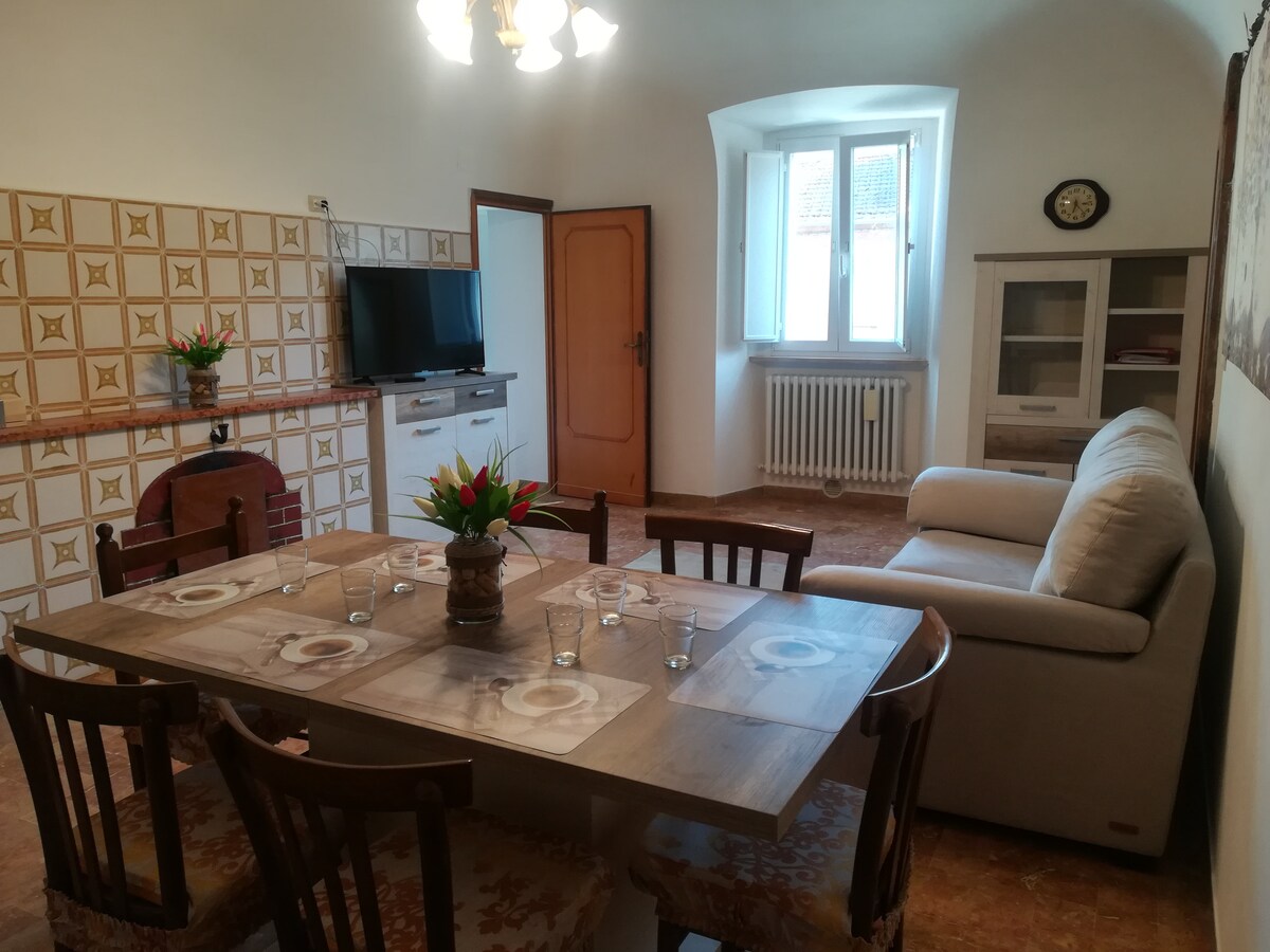 Mazajā Sella di Corno ciematā, 17 km attālumā no L'Aquila uz SS17, ko ieskauj Korno ielejas zaļā krāsa, senatnīgā vidē, Cricchi ģimenes senās mājas pirmajā stāvā, kas ir raksturīga renovēta naktsmītne ar jaunu dekoru aptuveni 60 kv.m platībā. Sastāv no lielas dzīvojamās/ēdamistabas ar virtuves zonu, divvietīgu guļamistabu, vannasistabu ar tualeti, balkonu. Lieliski piemērots dažu dienu atpūtai kalnos. Ideāli piemērots L'Aquila pilsētas un tās teritorijas apmeklēšanai.