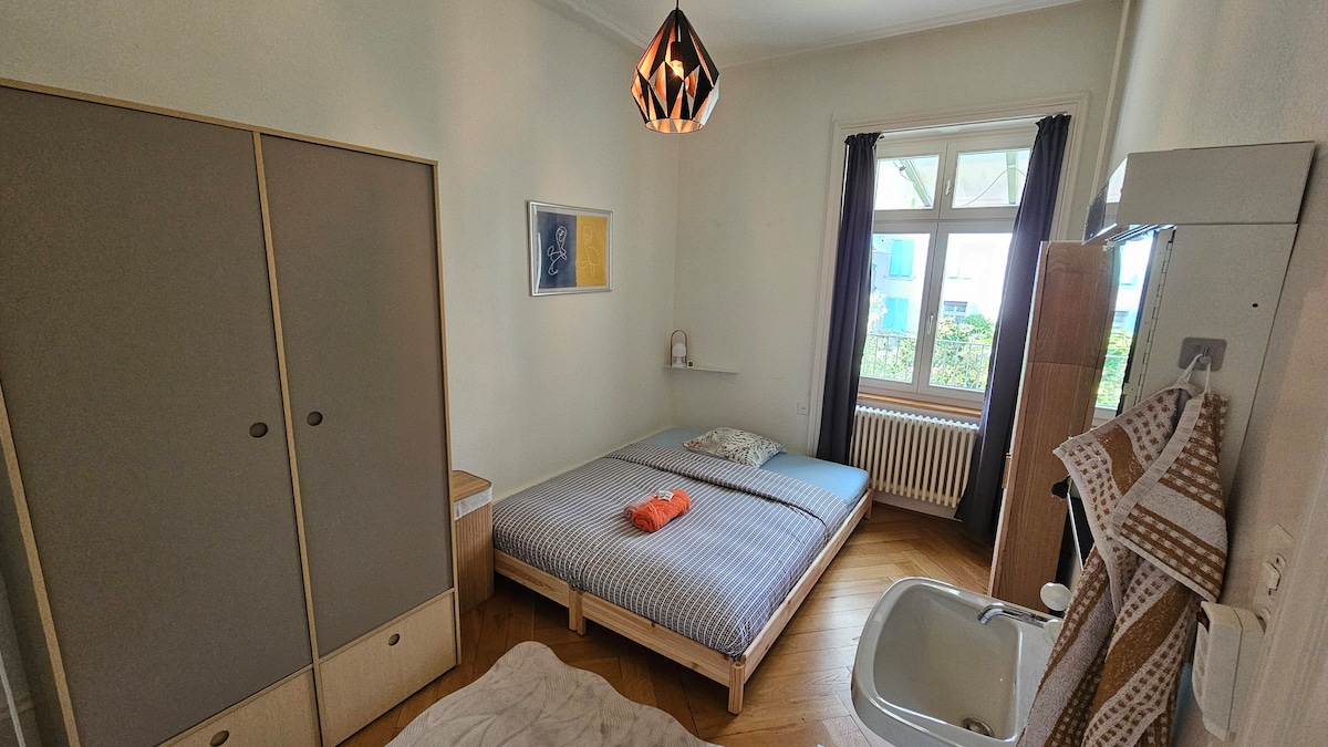 Privāts 1 guļamistabas dzīvoklis ar nelielu virtuvi un vannasistabu ar dušu un veļas mazgājamo mašīnu. Bezmaksas ātrs Wi-Fi6 un kopīgs dārzs ar verandu un kamīnu. Dzīvoklis atrodas 5 minūšu attālumā no galvenās dzelzceļa stacijas un 1 minūtes attālumā no 6. tramvaja, kas ved tieši uz izstāžu laukumu. Tā atrodas arī zooloģiskā dārza tuvumā un tieši blakus lielam parkam. Cenā ir iekļauta arī "BaselCard", ar kuru sabiedriskais transports ir bez maksas un muzejiem/zooloģiskajiem dārziem ir 50% atlaide.