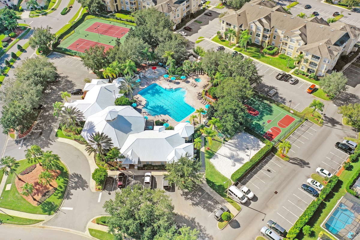 Šis satriecošais otrā stāva dzīvoklis ir pārveidots un labiekārtots, un tas ir IDEĀLI PIEMĒROTS ģimenēm! Atrodas Vindzoras Palmsas kūrortā tikai 3 jūdžu attālumā no Disneja pasaules! - 8-3 guļamistabas, 2 vannasistabas - Ērti nektāra matrači -Virtuve/ēdamzona - Dīvāna gulētājs - ekranizēti lanai - Veļasmašīna un žāvētājs - Bezmaksas Wi-Fi un kabeļtelevīzija - Bezmaksas autostāvvieta - Bezmaksas papildērtības: baseins, šļakatu paliktnis, sporta zāle, teātris, teniss, basketbols, volejbols, rotaļu laukums, grila/piknika vietas -Sandviču veikals, Tiki bārs, veikals, arkāde