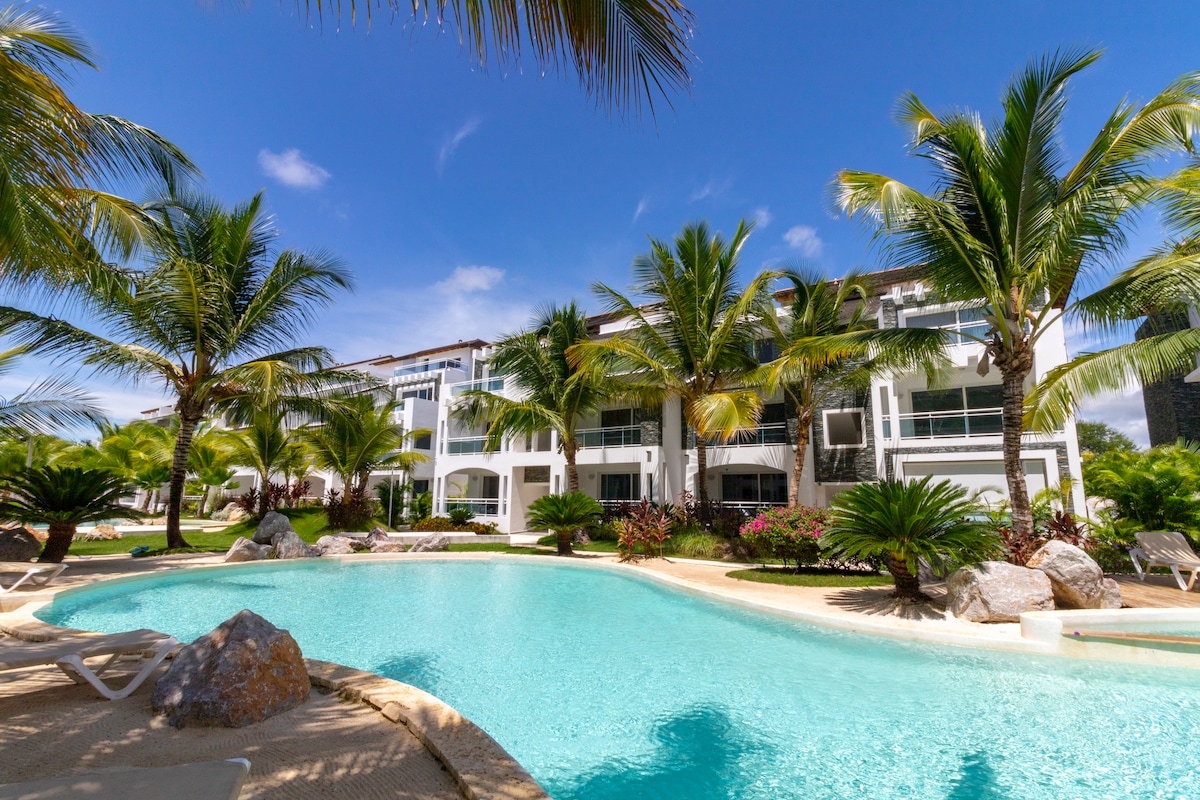 Tikai 1 minūtes gājiena attālumā no privātās pludmales (redzama no dzīvokļa durvīm), kas atrodas ekskluzīvākajā Bajahibes rajonā, Dominikā. Ekskluzīvajā Cadaqués kūrortā: 3 baseini, privāta piestātne, ūdens parks, restorāns, bāra kafejnīca, tropu dārzi, ērta divguļamā gulta un 300 diegu palagi, 24 000 BTU A/C, šūpuļkrēsls (līdz 350 mārciņām), aprīkota virtuve, ātrs Wi-Fi un viedtelevīzija, grāmatas, galda spēles. Viss ir gatavs neaizmirstamai un ērtai atpūtai paradīzē!