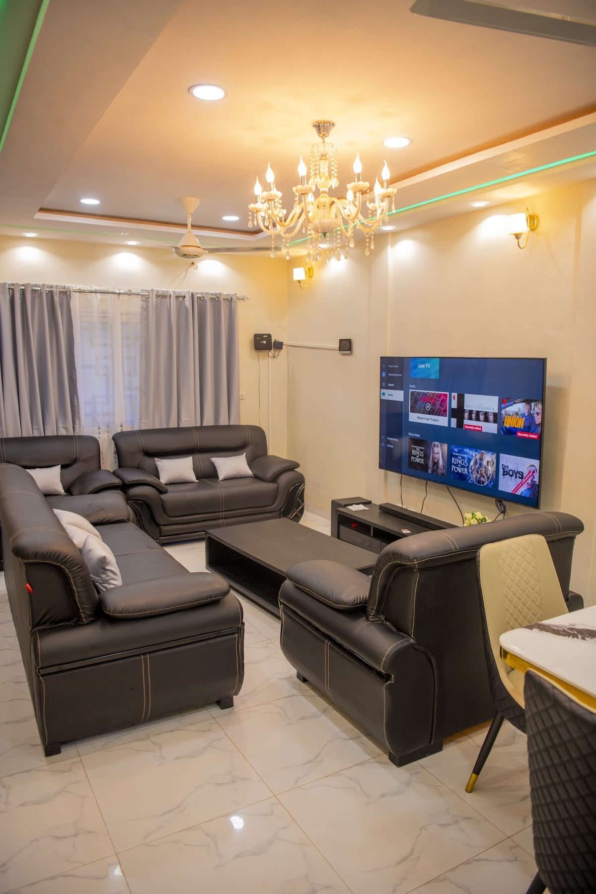 Atklājiet šo plašo mājokli Vagadugu, tikai 5 minūšu attālumā no Universalis kompleksās skolas. Ideāli piemērota ģimenēm, draugiem vai darījumu ceļotājiem, tā piedāvā trīs mājīgas guļamistabas, dzīvojamo istabu ar 65 collu televizoru, terasi ar jauku skatu un četras vannasistabas (trīs iekštelpās, vienu ārā). Izbaudiet lielu pagalmu, ātru Wi-Fi, veļas mašīnu, uzkopšanas pakalpojumus un nakts apsardzi, lai jūsu uzturēšanās būtu ērta un bezrūpīga. Rezervējiet šodien un izbaudiet komfortu pašā Vagas sirdī!