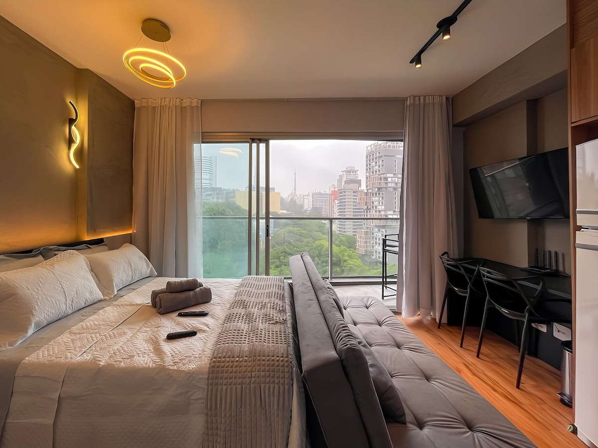 Mājīgs un kluss dzīvoklis, kas atrodas augstas klases luksusa daudzdzīvokļu namā, tikai dažu soļu attālumā no Paulista avēnijas, MASP, slaveniem restorāniem, piemēram, Spot un Trianon-MASP un Consolação metro stacijām. Daudzdzīvokļu namā ir īpaši aprīkota sporta zāle, lasītava, gardēžu atpūtas telpa, 25 metru iekštelpu apsildāms baseins, panorāmas bezgalības baseins, džakuzi, 3 āra burbuļvannas, sausā sauna un tvaika pirts.