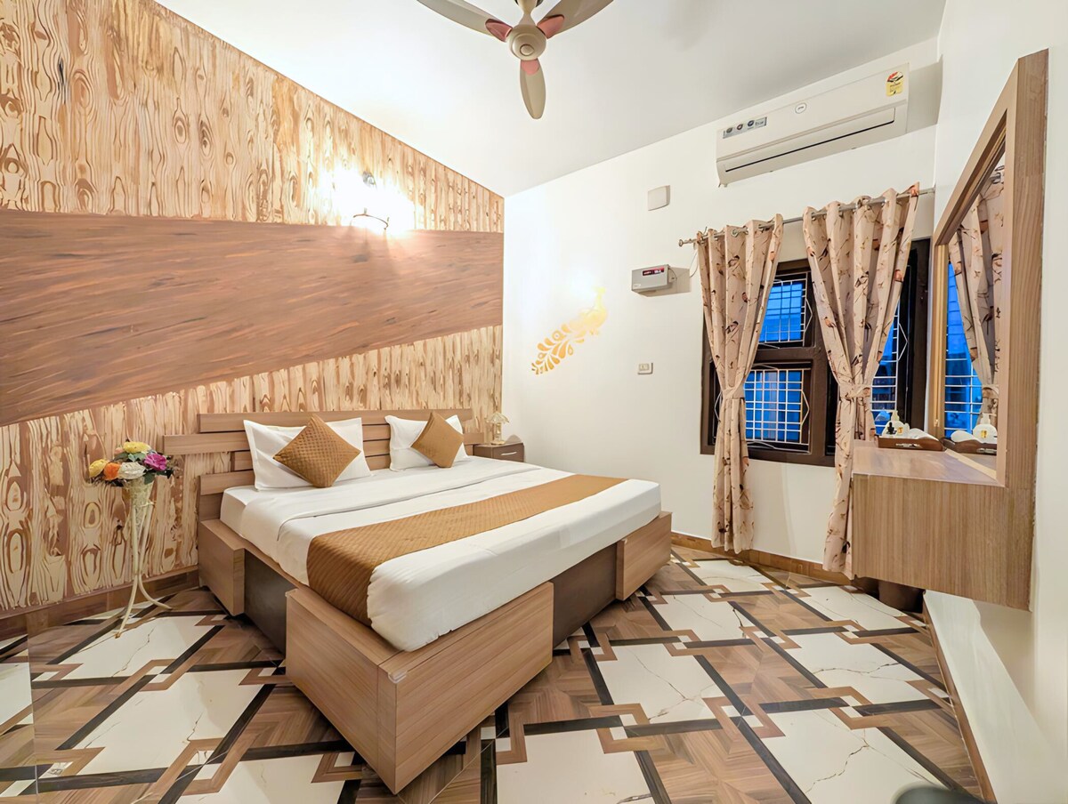 Experience comfort in this spacious 1045 sq ft 2 BHK, right at the heart of Neemrana, just 2 km from the highway. Newly painted, airy and sunlit, with a lovely view and great ventilation. Fully furnished with AC, fridge, TV and all essentials. A clean, peaceful, family-friendly home designed for a relaxing stay. 5 kms away from Neemrana Fort, NIIT Campus and 135 Kms away from Khatu Shayam ji Temple.