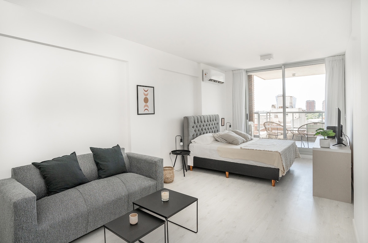 Hermoso monoambiente moderno, luminoso y equipado.