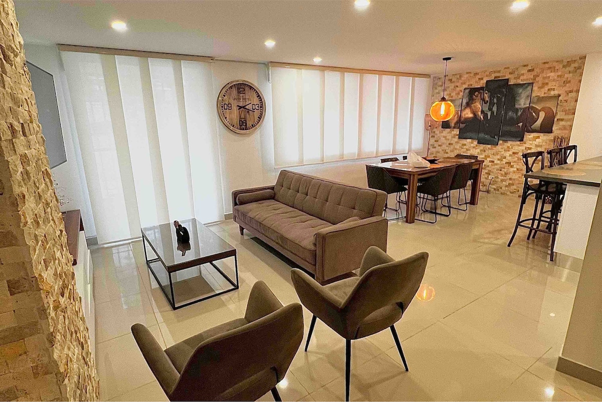 🌟EKSKLUZĪVS PENTHAUSS BEZ AIRBNB PAKALPOJUMA NODEVAS🌟 Penthouse ar labāko panorāmas skatu uz Kali, kur debesis ieskauj pilsētu. Ideāli piemērots atpūtai, atveseļošanai, darījumu braucieniem vai ģimenēm, kas meklē komfortu. Atrodas Losristalesā, ekskluzīvā un drošā vietā, tikai 5 minūšu attālumā no populārākajām klīnikām Tequendama un Parque del Perro un 8 minūšu attālumā no pilsētas centra, El Peñón un Granada. Pilnībā aprīkots ar gaisa kondicionētāju, 3 mājīgām guļamistabām, veļasmašīnu, žāvētāju un Wi-Fi īpašam mājoklim.
