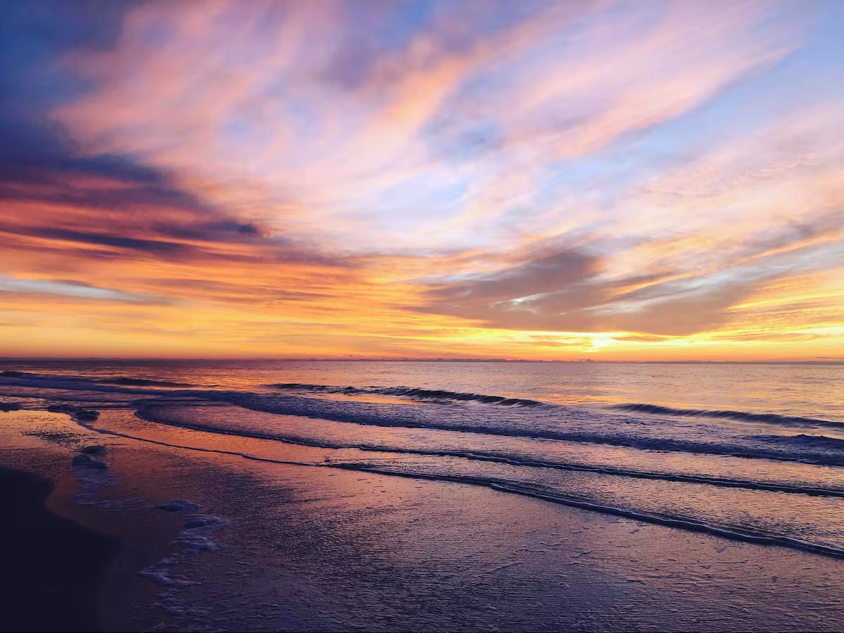 Pilnībā pārbūvēts luksusa pludmales dzīvoklis ar balkonu. Skats uz ūdeni/pludmali - balkons un viesistaba. Īsa pastaiga līdz pludmalei. Saatva Luxury matracis Master mājoklī. 2. gultā ir divguļamā divstāvīgā gulta ar divvietīgu gultu. Dīvāns - izvelkamā gulta, kurā guļ vēl divi. Piemērots bērniem! Iepakojiet n rotaļu ar atmiņas putu matraci un autiņbiksītēm. Rotaļlietas, bērnu izturība, bērnu piederumi utt. Pludmales piederumi, dvieļi, vagons, krēsli, rotaļlietas un lietussargi.. zemāk ir noliktavā. Tuvumā ir pieejama airu dēļa un velosipēdu noma!