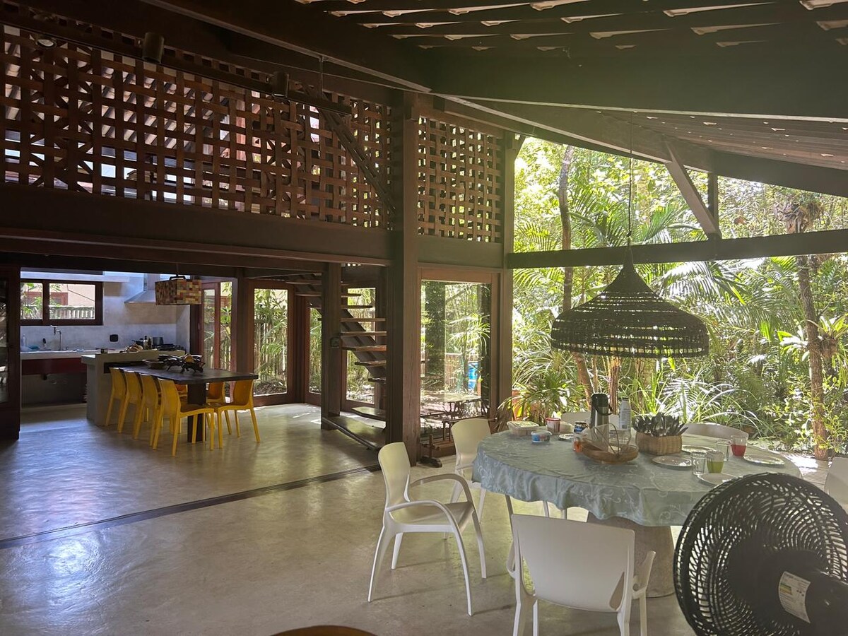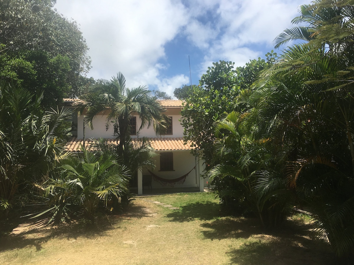 Linda vila exótica na floresta para até 6/7 pessoas.ù Ficar nesta casa significa dar um mergulho no lindo mar Atlântico que a rodeia. Uma grande varanda dupla com duas redes e uma cozinha muito ampla oferecerão a oportunidade de viver praticamente ao ar livre. Nosso Caseiro cuida do jardim e cuida das as cadelas pastoras fem, que são dóceis e carinhosas e bem acostumadas com a presença dos hóspedes. Os cães permanecem numa área cercada onde temos a grande casa por onde passamos para ir à praia
