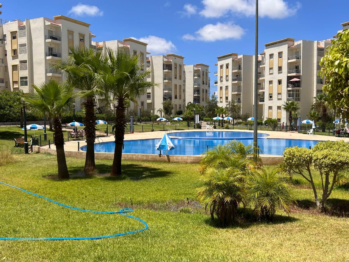 Skaista dārza līmenī, Bahia Golfe Beach piejūras kompleksā, kurā ir 3 guļamistabas, plaša viesistaba ar gaisa kondicionētāju, 2 vannas istabas, labi aprīkota virtuve, no visām istabām paveras skats uz dārzu un terasi, kas piedāvā svaigumu un siltu atmosfēru naktsmītnei. Jūsu rīcībā ir 2 velosipēdi. Skaists baseins, kas pieejams visu gadu . Tieša piekļuve jūrai, 3 km pārveidota karnīze, privāta pludmale, Vichy viesnīca,golfa kluba māja MARJANE netālu no pat Glovo Mc Do ir pieejami piegādes veicēji
