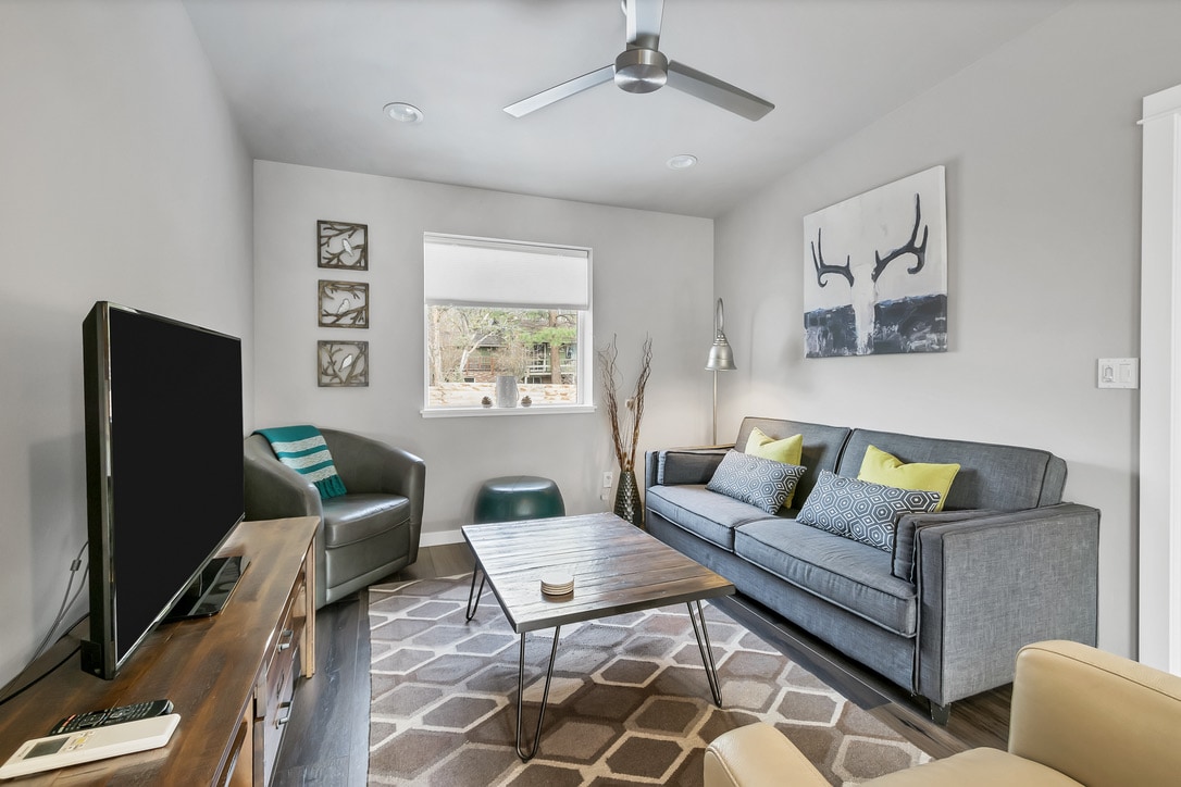 Šis mājīgais vienas guļamistabas, vienas vannasistabas dzīvoklis, kas atrodas virs garāžas, piedāvā privātumu un mieru bez kopīgām sienām ar galveno māju. Apkārt ir sulīgi kadiķi un priedes, un katrs logs ierāmē rāmu, mājiņai kokā līdzīgu skatu, ļaujot jums justies pilnībā iegrimušam dabā. Pilnībā aprīkotā virtuve ir ideāli piemērota maltīšu pagatavošanai neatkarīgi no tā, vai tā ir klusas brokastis vai gardēžu vakariņas. Pēc iepazīšanas dienas atpūtieties pie mājīgā kamīna, piešķirot mājoklim siltumu un komfortu.