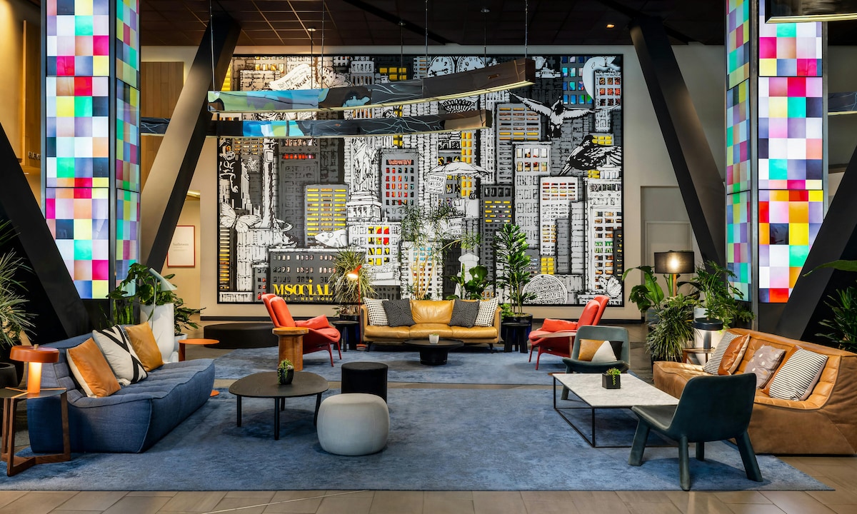 Pamostieties no Centrālparka un Ņujorkas Midtaunas kņadas. Malkojiet espresso elegantā, mākslas piepildītā vestibilā pirms 5. avēnijas, Brodvejas vai Centrālparka lapu taku apskates. Nāciet saulrietā, dodieties uz jumtu, lai baudītu kokteiļus un pilsētas skatus, kas nozog izrādi. Neatkarīgi no tā, vai esat šeit, lai klejotu, pusdienotu vai dejotu visu nakti, mūsu viesnīca ļauj jums izbaudīt izcilu dizainu, vietējo garšu un bezrūpīgu pilsētas dzīvi vienā neaizmirstamā mājoklī.
