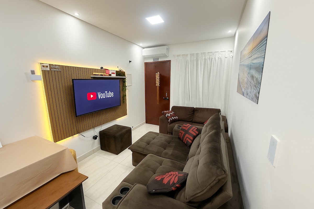 Sinta-se como se estivesse em sua casa de praia! Apartamento bem decorado e super bem equipado, com ar condicionado quente e frio nos dois dormitórios (01 suíte), sala e suite com tv, internet de alta velocidade, Netflix, HBO, Wi-Fi. Sua família vai estar perto de tudo excelente localização: 2 hipermercados , 3 farmácias, restaurantes, Burguer King e feira livre, Praia da Enseada à uma quadra. Possível Self Check in, *trazer roupas de cama e banho.