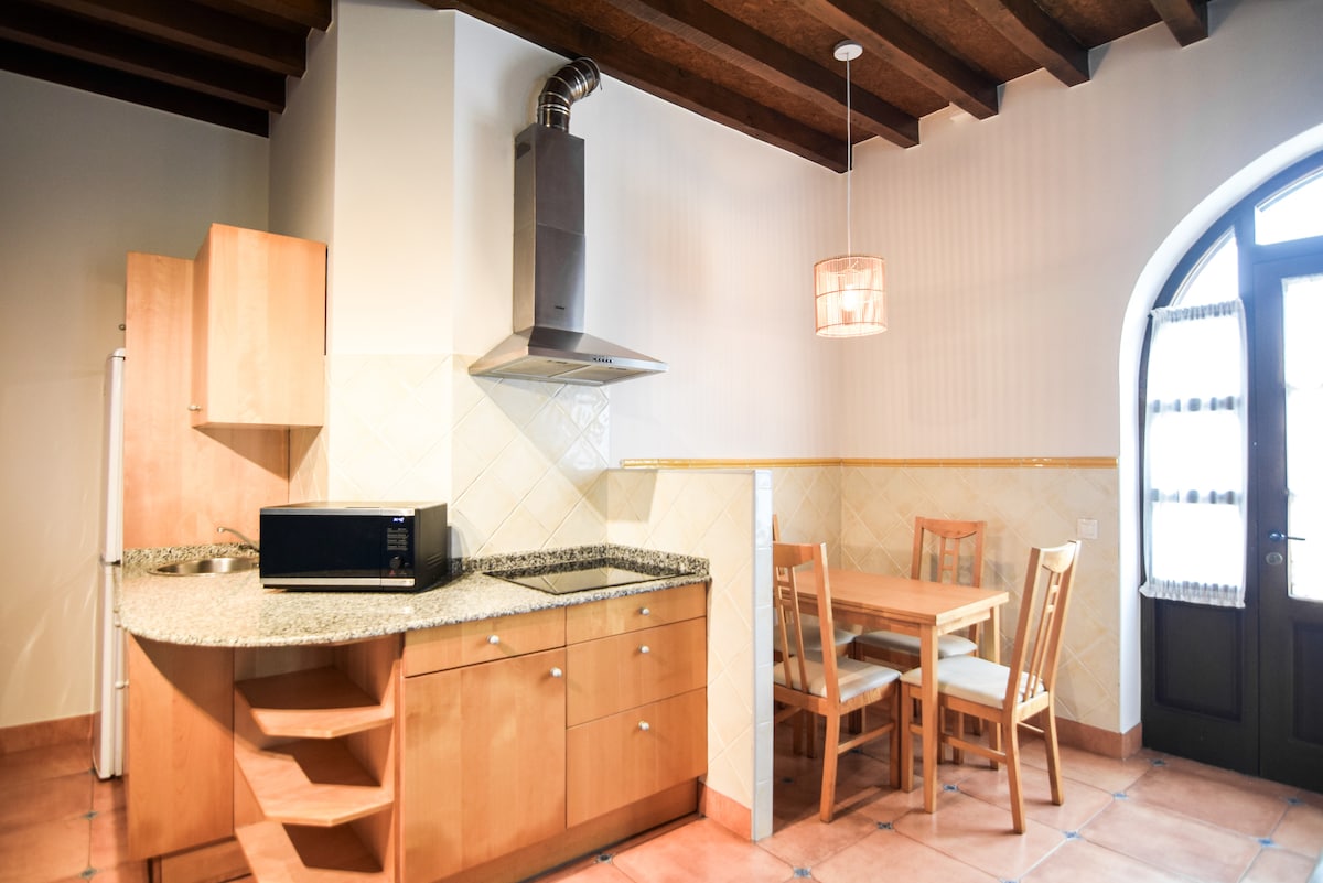 75 m2 noderīga māja, kas izvietota trīs līmeņos un kurā ir neatkarīga virtuve, sadalītājs-ēdamistaba, dzīvojamā istaba ar kamīnu un divas guļamistabas ar iebūvētu vannasistabu. Tā ir pilnībā atjaunota veca ēka, kas aprīkota ar keramikas plīti, cepeškrāsni, mikroviļņu krāsni, veļas mašīnu, trauku mazgājamo mašīnu, ledusskapi, maziem sadzīves priekšmetiem, traukiem un gultas un vannas veļu. Tai ir slēgta terase ar piekļuvi no virtuves, lai atpūstos vai ēstu ārā, un balkons virs ielas.