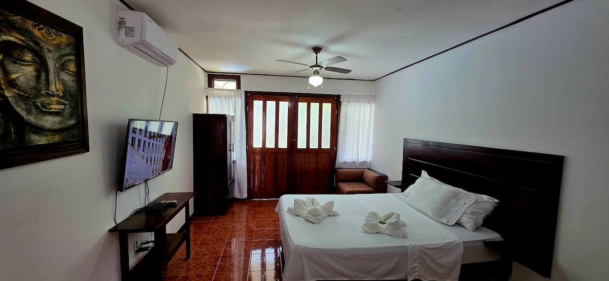 Mūsu luksusa divvietīgie numuri nodrošina lielisku komfortu! B&B Jardín de los Monos atrodas 2 minūšu gājiena attālumā no rāmās Matapalo pludmales. Izbaudiet jauko tropu dārzu un peldbaseinu ar bāru un solārijiem. Istabā ir iekļautas gardas brokastis no ēdienkartes. 15 gadus veci un vecāki, lai viesiem radītu mierīgu atmosfēru. Šis numurs piedāvā: privātu terasi ar mēbelēm un šūpuļtīklu, AC, divguļamo gultu, mini ledusskapi, griestu ventilatoriem un daudz ko citu. Atrodas centrā un ir viegli pieejams, bet jums ir nepieciešama automašīna!