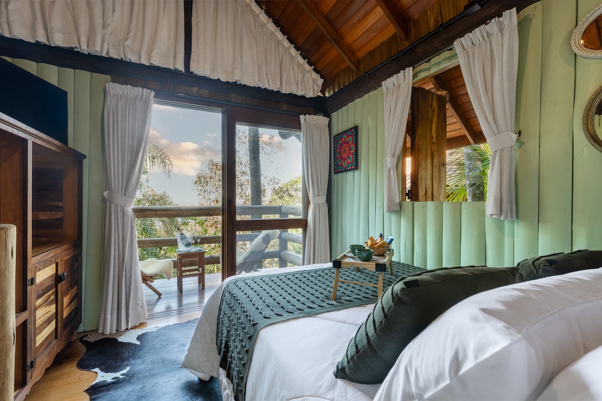 Recanto do Sossego 101 A CABANA MIRANTE Viva momentos inesquecíveis neste lugar único e ideal para relaxar com sua família. Não é só uma cabana mas uma experiência única em meio a natureza no litoral catarinense. Unindo o rústico ao sofisticado, essa cabana é o ambiente ideal para uma hospedagem com conforto em meio a natureza. Além de aconchegante, oferece uma vista deslumbrante das montanhas, perfeita para aproveitar dias românticos a dois ou em família.