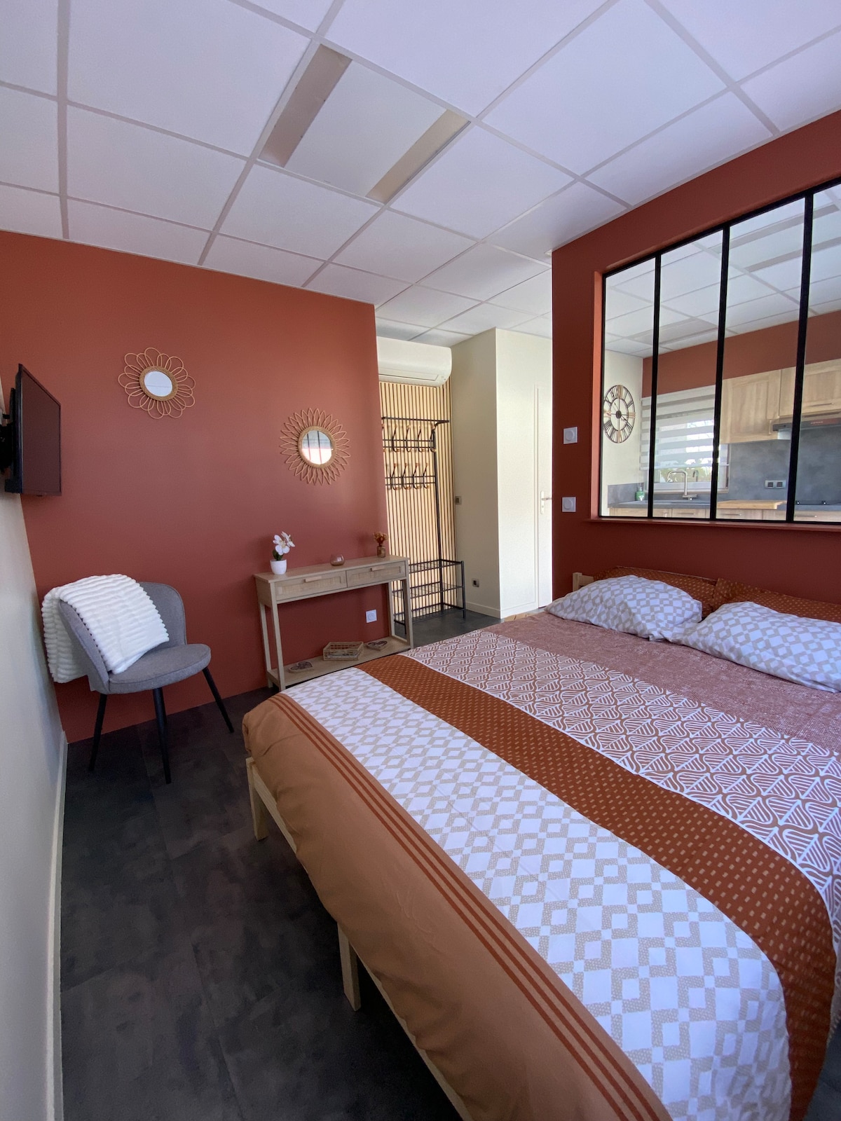 La Gouille atrodas 1,6 km attālumā no tirdzniecības centra Epenottes un 1,5 km attālumā no pilsētas centra un vecās Doles. Pilsētas lauki ir lauki. Ļoti kluss! Jūsu rīcībā ir 19 m² T1. Guļamistaba, televizors, WC, vannasistaba, virtuvīte, ledusskapis, tēja, kafija, bļodas, šķīvji, galda piederumi, stikls, planča, galds, kā arī divi krēsli un to spilveni, ugunskura vieta, grils, koks. Visa jūsu daļa ir apsildāma/aprīkota ar gaisa kondicionētāju neatkarīgi no pārējās mājas.