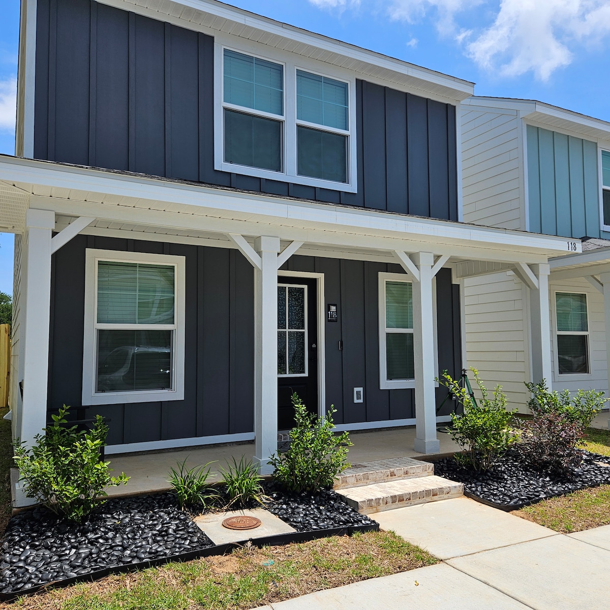 Soļi no ūdens, jaunbūve Gulfportā! Aizbēdziet un izbaudiet satriecošu pludmales saullēktu/saulrietu no viena no diviem klājiem ar skatu uz līci vai vienkārši šķērsojiet Beach Blvd un novietojiet pirkstgalus balto smilšu pludmalē. Labi iecelts, 2 stāvu, 2 guļamistabu mājoklis, kas atrodas tieši pludmalē, no kuras paveras skats uz okeānu, un senatnīgām baltu smilšu pludmalēm. Mazāk nekā 2 jūdžu attālumā no Gulfport centra, Jones parka un salas skata kazino vai 25 minūšu gājiena attālumā. Atrodas starp Biloxi un Bay St. Louis un < 1,5 h līdz NOLA