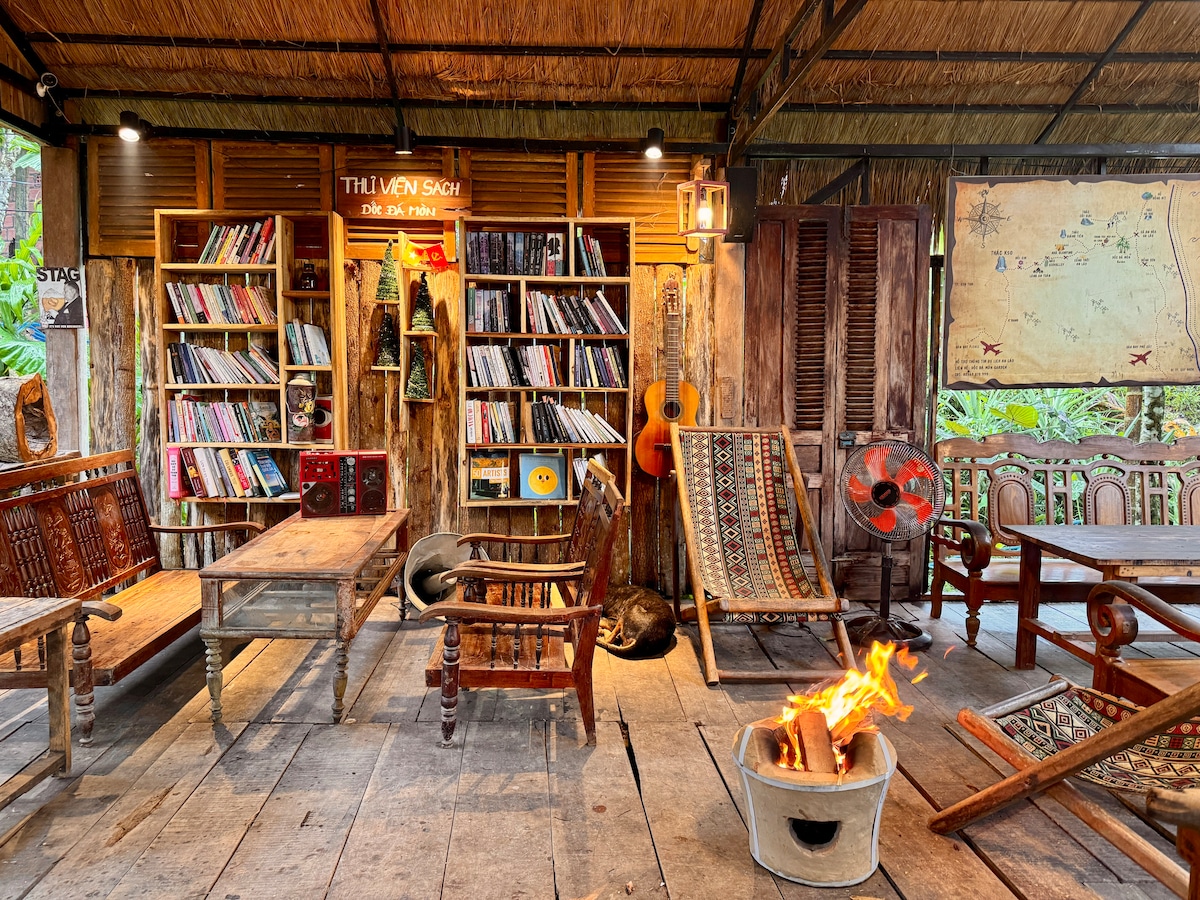 Một căn nhà nhỏ bên cạnh quán ăn nhỏ bên suối với nhiều trải nghiệm. Ở đây có kayak để chèo trên dòng sông xang, có những món ăn đặc trưng của vùng cao, có lửa trại, bia lạnh, rượu được làm từ trái cây rừng, bàn bida, bi lắc và những điểm du lịch đẹp gần đây rất hấp dẫn ạ.