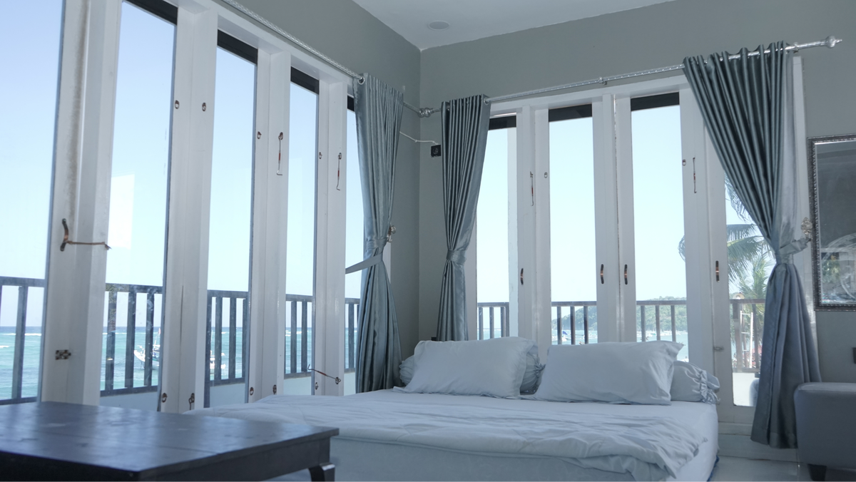 Our double room is equipped with everything you need for a relaxing and enjoyable stay. The room features a comfortable queen size bed with plush bedding, ensuring a good night's sleep. The patio offers the perfect spot to take in the breathtaking ocean view while sipping on your morning coffee.