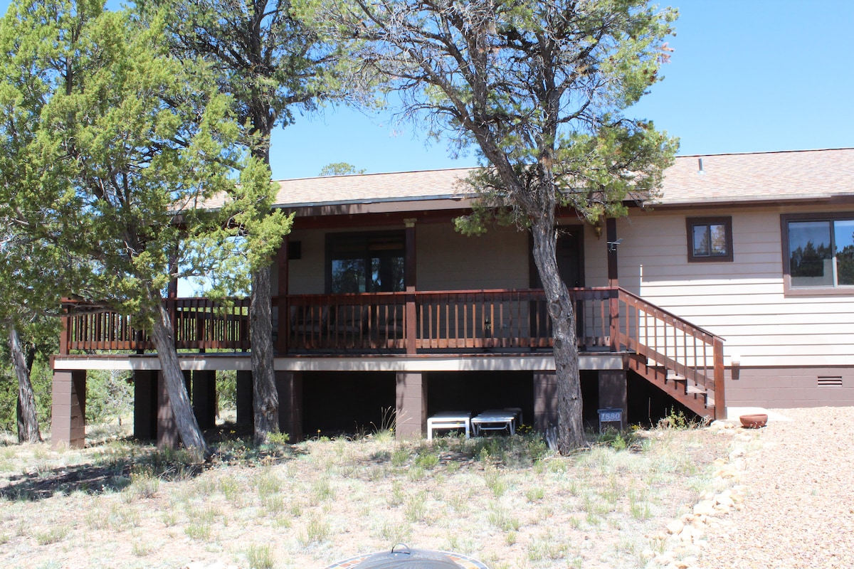 Kad pēdējo reizi redzējāt Piena ceļu! Tikai 2 stundu attālumā no Fīniksas šī atpūtas vieta atrodas uz viena akra un atgriežas Nacionālajā mežā. Izbaudiet četrus tuvumā esošos makšķerēšanas ezerus, geocaching takas un bagātīgas pārgājienu, riteņbraukšanas un kvadraciklu takas pa majestātiskajām Ponderosa priedēm. Lieliska vairāku paaudžu telpa, lieliska ģimenes atpūta 7 700 pēdu augstumā! Mūsu ģimenes brīvdienu mājā var nakšņot līdz septiņiem cilvēkiem, un tā piedāvā kaut ko ikvienam! Šī ir vieta, kur radīt ģimenes atmiņas, ko saglabāsiet uz visiem laikiem.